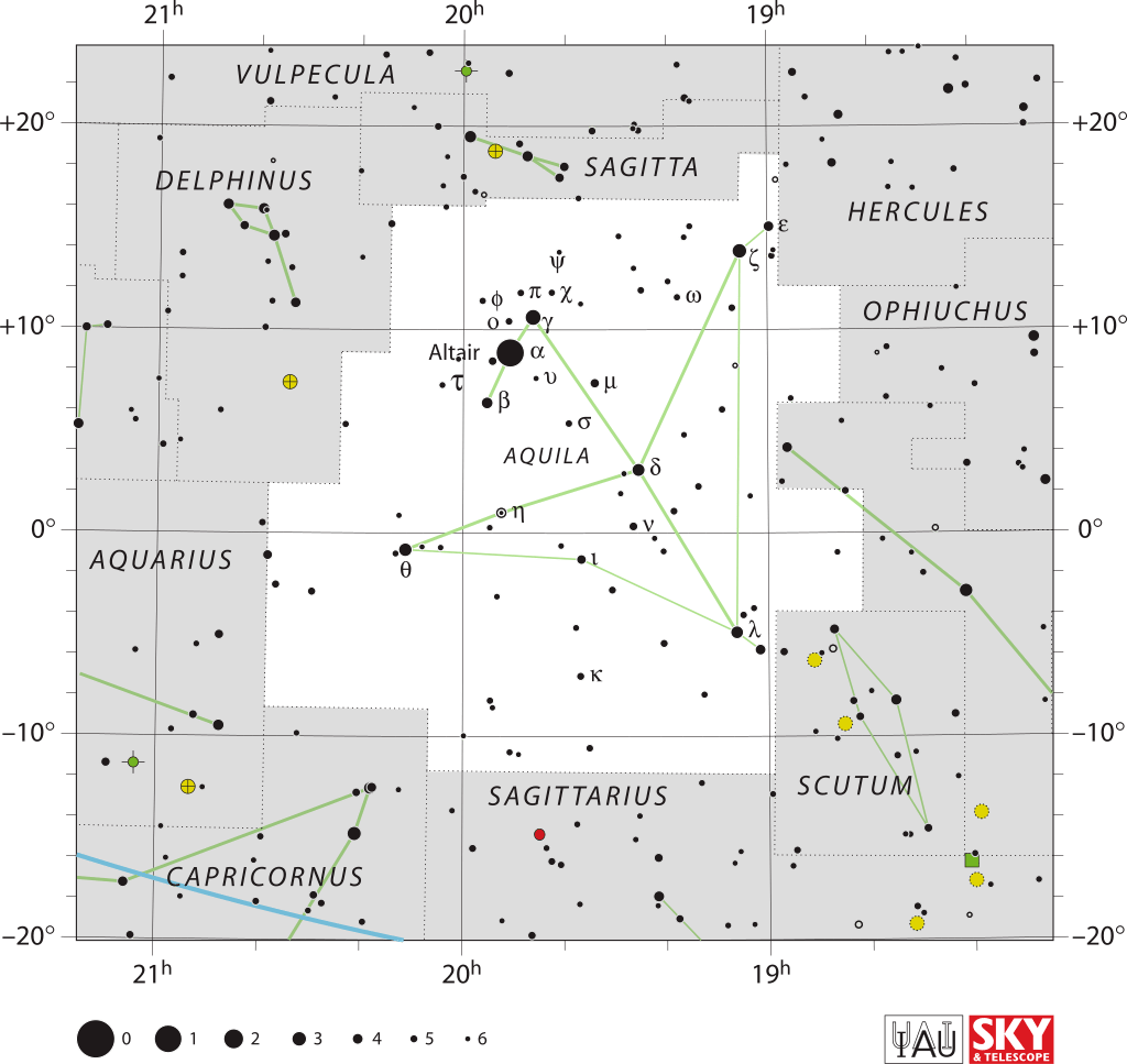 - Étoile la plus brillante: Altaïr (Alpha Aquilae)