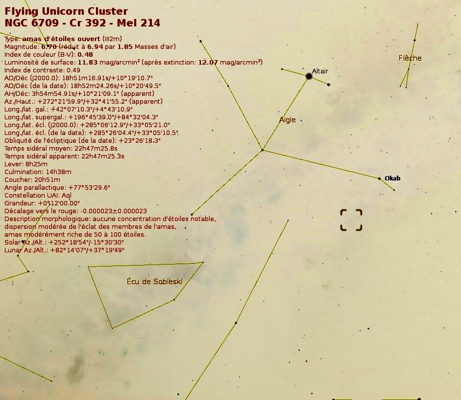 - Amas d’étoiles: Des amas d’étoiles comme NGC 6709 sont visibles avec de petits télescopes.