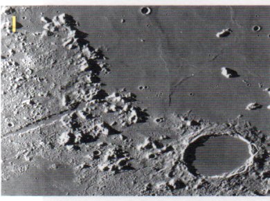 Les Alpes( longueur 250 km sur 50 Km de large) et le cratère Platon (diamètre 101 Km) : la chaîne de montagne est composée de plusieurs pics atteignant 2000 m et même 3600 m pour le plus haut. Un effondrement du sol a créé un fossé de 11 km de large : la vallée des Alpes. Le cratère Platon est un superbe cratère à fond plat rempli de lave sombre.