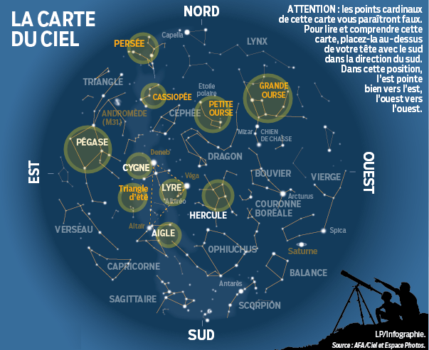Quand le ciel devient noire, une puis deux, puis trois, puis des dizaines, puis des milliers d’étoiles apparaissent dans le ciel. Avec un peu d’imagination on peut y voir des animaux, des personnages, des objets, … et des histoires extraordinaires.
